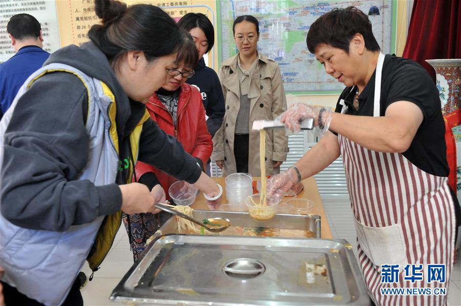 10月17日,在北京市西城区广内街道为老服务中心,社区共建单位的工作人员和社区干部在为老人们准备长寿面。 新华社记者 赵宇思 摄