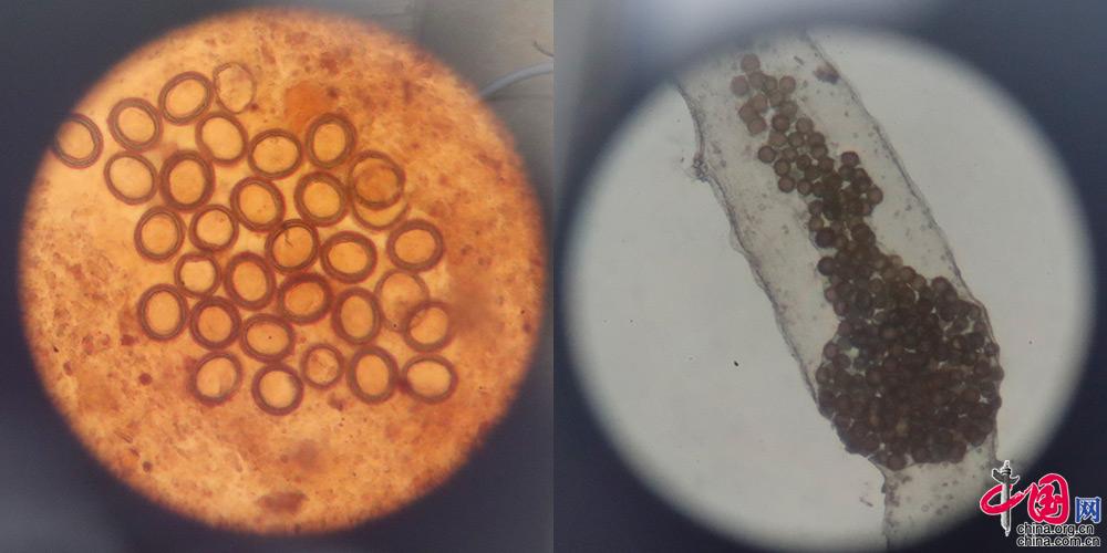 棘球绦虫成虫与虫卵(拼图) 中国网杨佳 摄影