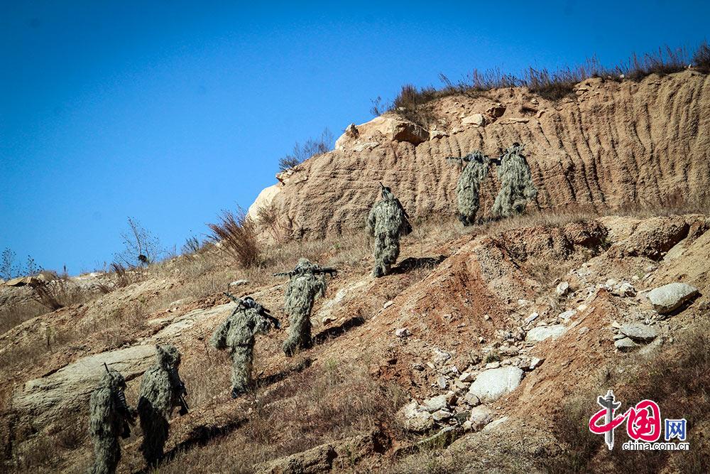 实战中最佳的狙击位置对于狙击手行动的成败具有决定性作用,狙击手训练中翻山越岭寻找最佳狙击位置。蔡霖伟摄
