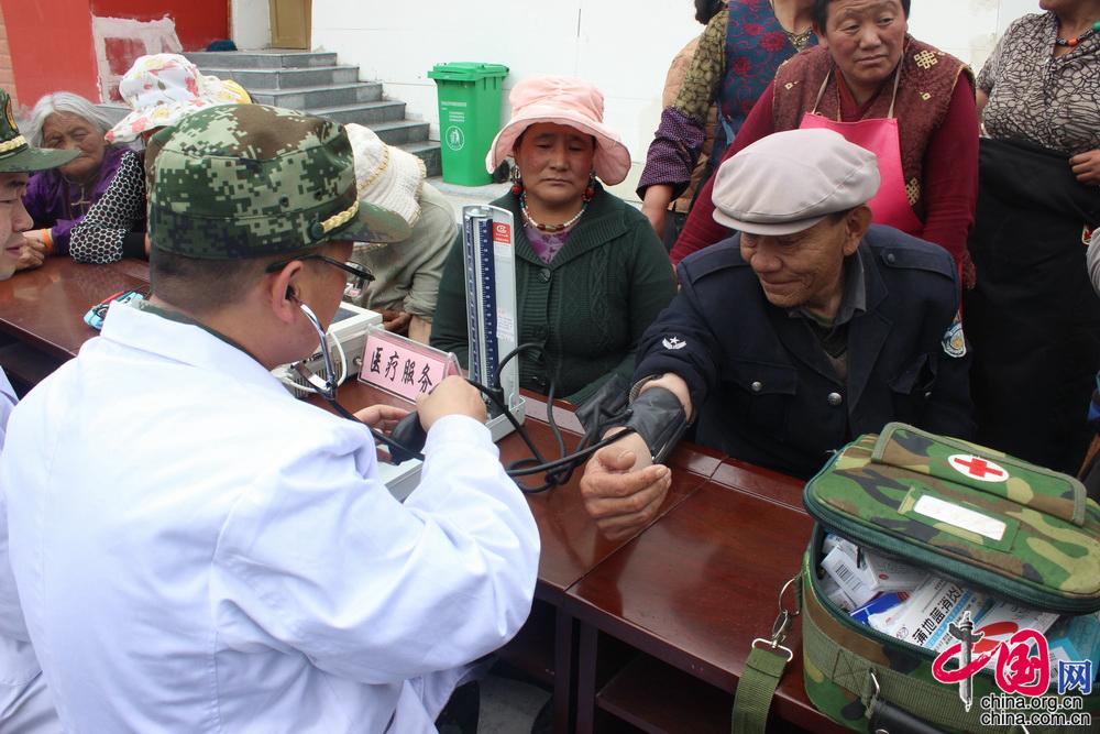 2018年,武警青海总队玉树支队派出军医为驻地群众进行义务巡诊。 (图片由武警玉树支队提供)