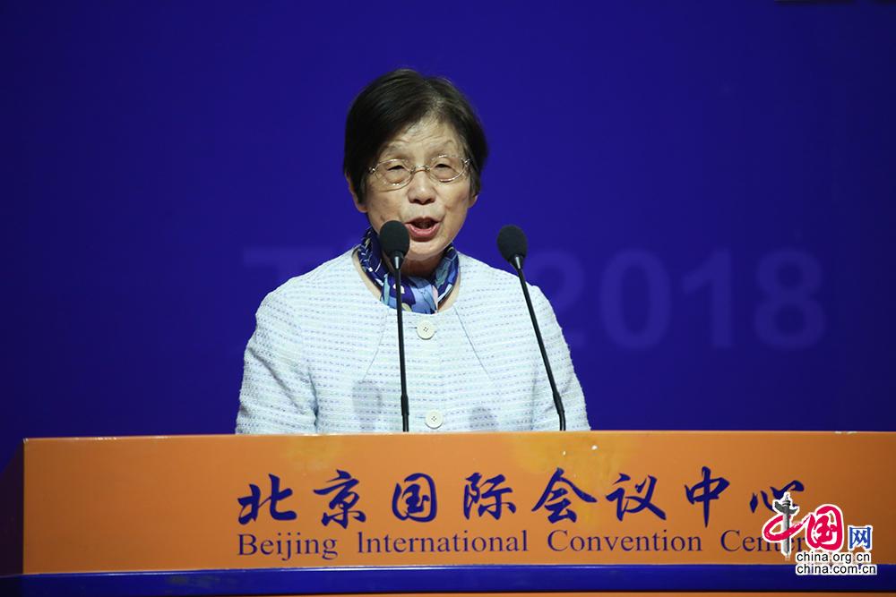 中国翻译协会顾问、中国翻译研究院副院长施燕华发布《翻译服务 口译服务要求》。中国网 伦晓璇摄影
