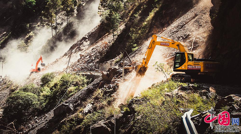 2015年5月14日,尼泊尔发生特大地震,武警某部交通第三支队官兵正在全力抢通道路,展开跨国救援。武警某部交通第三支队供图