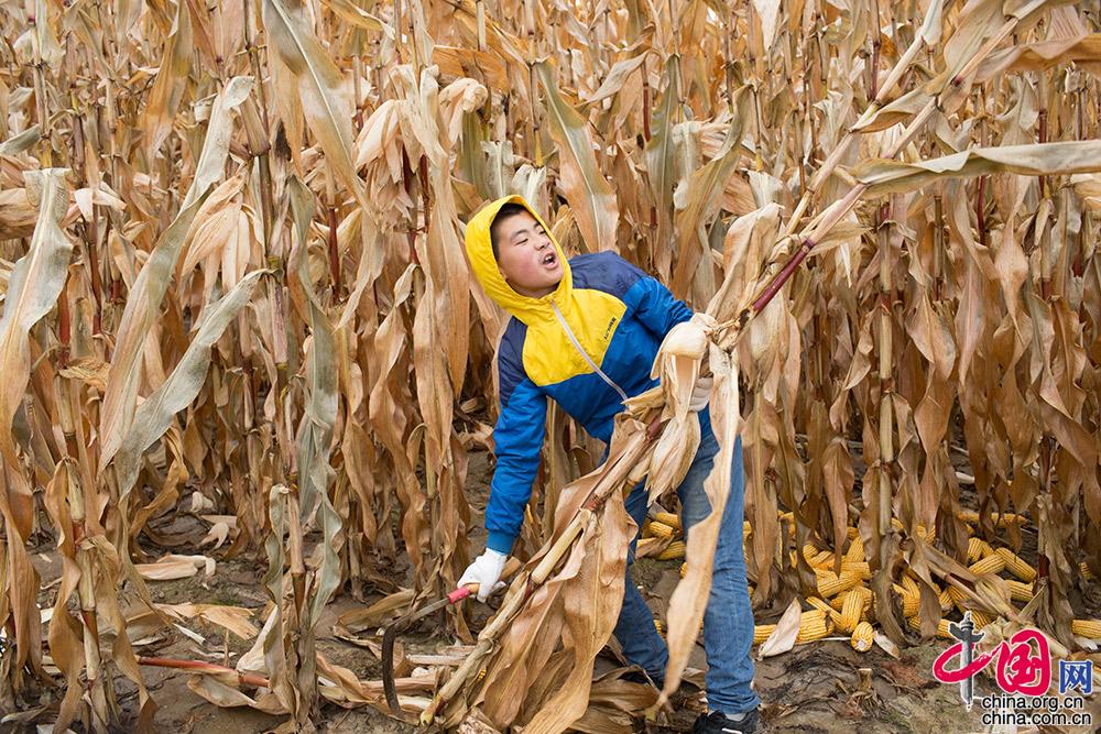 姐姐们平时都宠着这个特别的弟弟,所以干起农活来,彬彬并不是那么熟练。