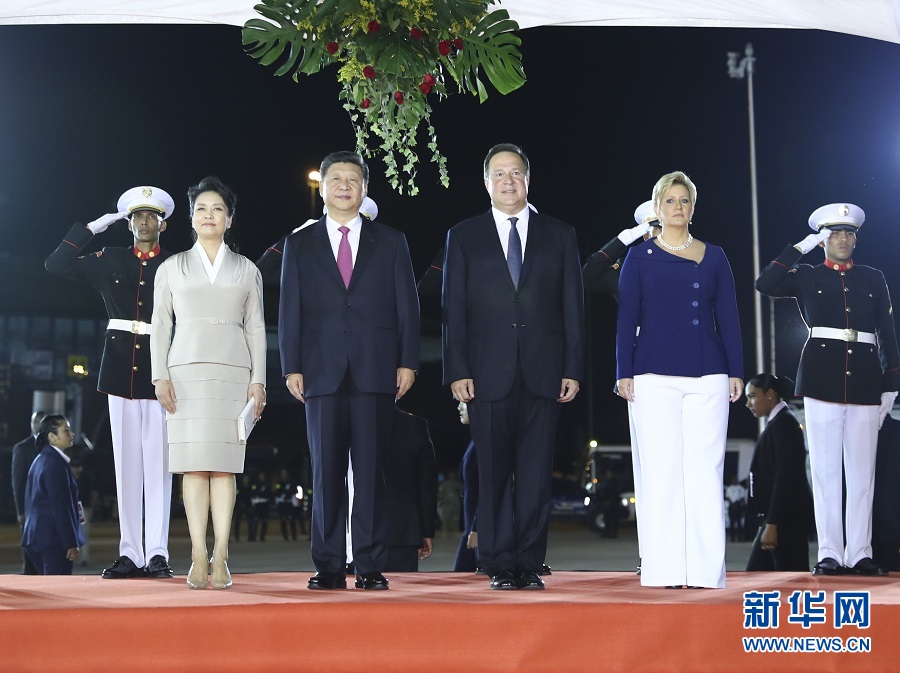 当地时间12月2日,国家主席习近平抵达巴拿马城,开始对巴拿马共和国进行国事访问。巴拿马总统巴雷拉在机场为习近平举行隆重欢迎仪式。这是习近平和夫人彭丽媛同巴雷拉和夫人卡斯蒂略在欢迎仪式上。 新华社记者谢环驰摄
