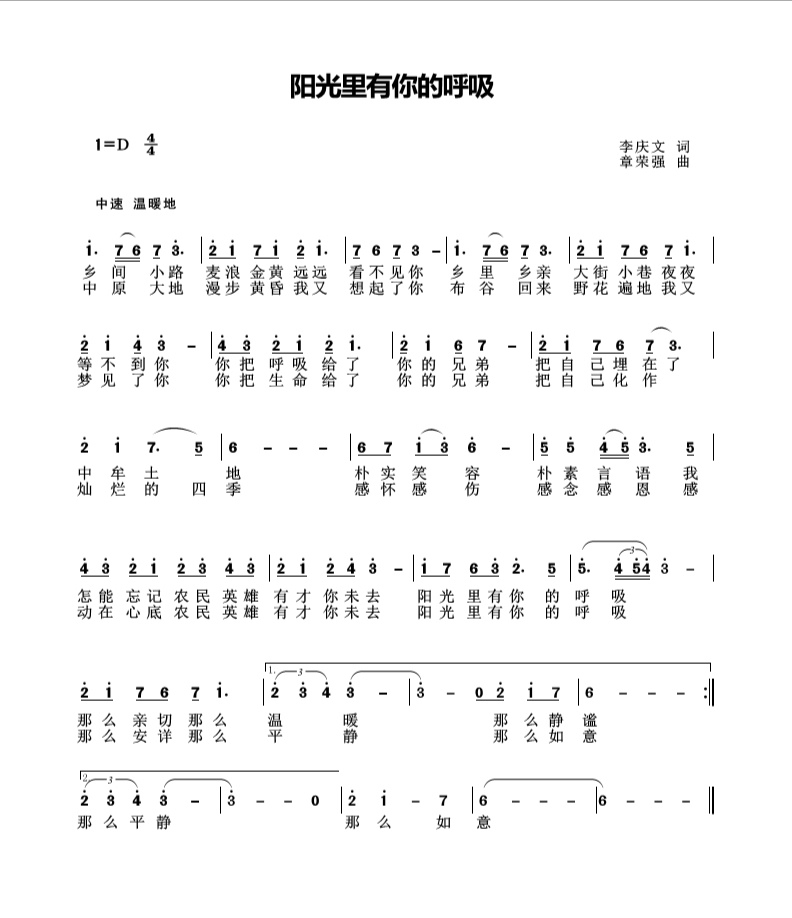 歌曲《阳光里有你的呼吸》