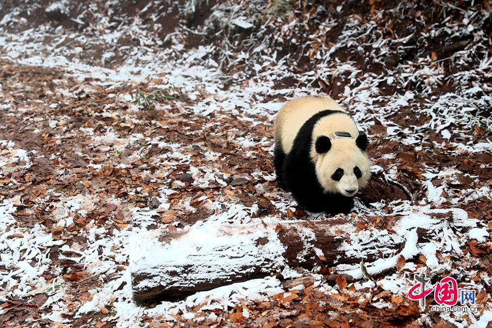 大熊猫在大相岭大熊猫野化放归基地适应场地。(成都大熊猫繁育研究基地提供)