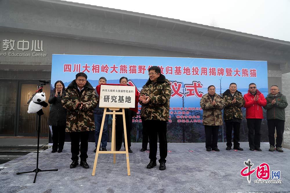 “四川大相岭大熊猫野化放归基地”揭牌。(成都大熊猫繁育研究基地提供)
