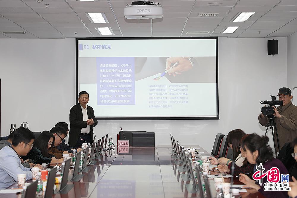 12月18日,科技部引智司科普工作负责人邱成利发布2017年度全国科普统计数据。中国网记者 李佳摄影