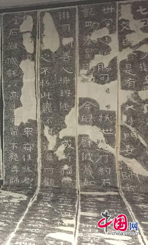 历代碑刻陈列馆,陈列着书法史上著名张迁碑和衡方碑原碑。《张迁碑》和《衡方碑》两碑并列放在一起,可以看到《张迁碑》的古朴淳厚,雄强大气,堪称汉碑中此类风格的代表作。《衡方碑》也是汉代隶书成熟时期的作品。用笔极为有力,笔画丰润,在转折和撇、捺处尤见功力,形成外方内圆的效果。