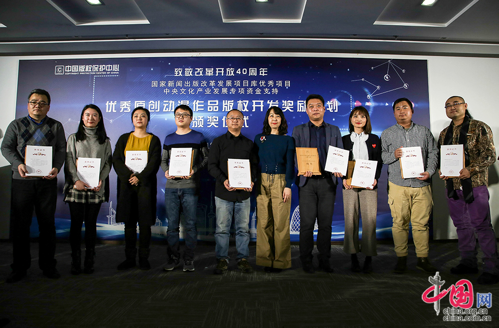 《中国版权》杂志社社长、总编辑韩璐为铜奖获得者颁发奖牌和证书。中国网 刘桢珂摄影