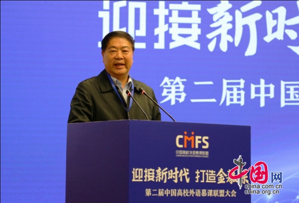 之后,联盟顾问委员会名誉主任、中国高等教育学会前会长瞿振元教授发表讲话。瞿会长认为联盟发展思路清晰,把握住了课程标准、课程体系和课程应用三个关键要素,并对联盟未来发展提出三点建议:首先,在课程建设过程中要注重结构性认知,通过外研社等机构对教材的数据统计和专业支撑,使慕课设计规划更为合理;其次,要加强引导,加大对慕课运用的支持,在教育公平化进程中更进一步,做到导向正确、发展多元;最后,要注意平台建设的规范化,在教学过程中体现和贯彻现代教育理念,通过慕课建设大力促进中国高等教育改革。