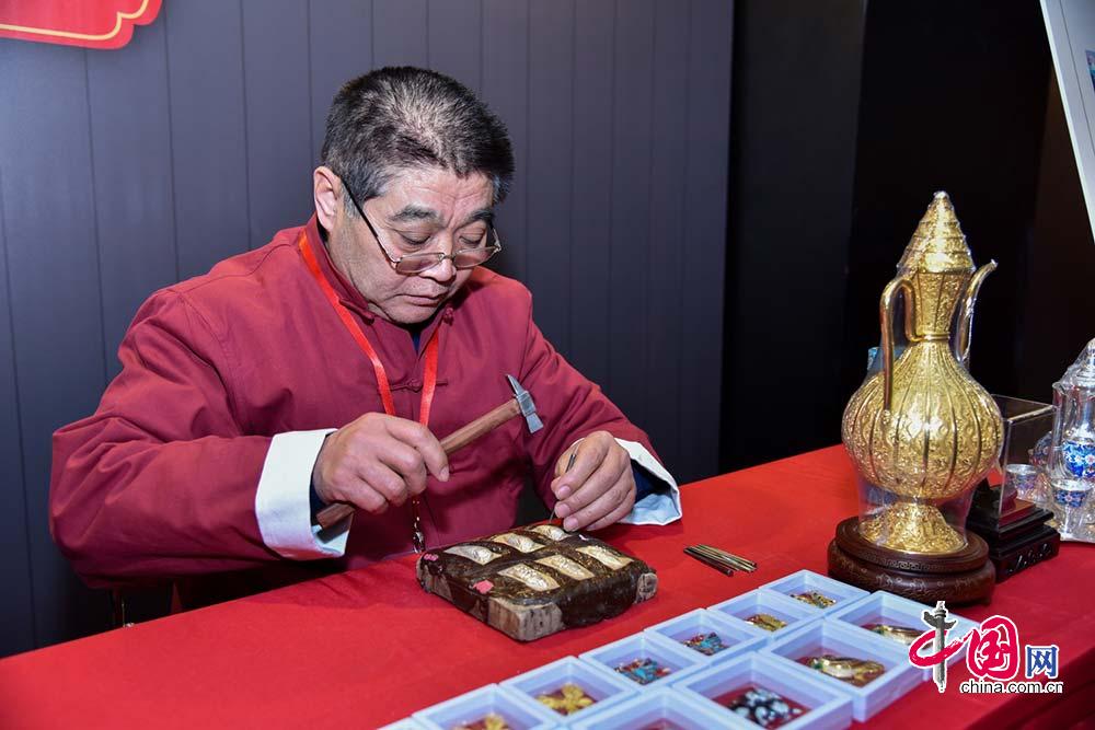走入剧场,首先映入眼帘的是传统工艺展示区域,天津杨柳青年画传承人霍庆有、河北大厂花丝镶嵌传承人马福良、景泰蓝传承人李荣魁、河北廊坊雕漆传承人朱江、百宝嵌传承人周洪俊、第什里风筝传承人赵艳强、面塑传承人高继泽等在现场进行了非物质文化遗产项目的手工制作展示,令观众领略到国家级传承人精妙绝伦的指尖艺术,深刻展现出中华民族千百年来深厚的传统文化底蕴。