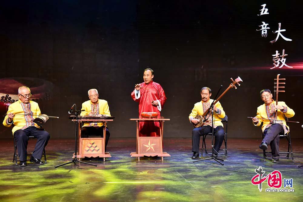 北京非遗项目五音大鼓传承人黄清军带领传承团队演绎传统段子《游西湖》。王猛摄影