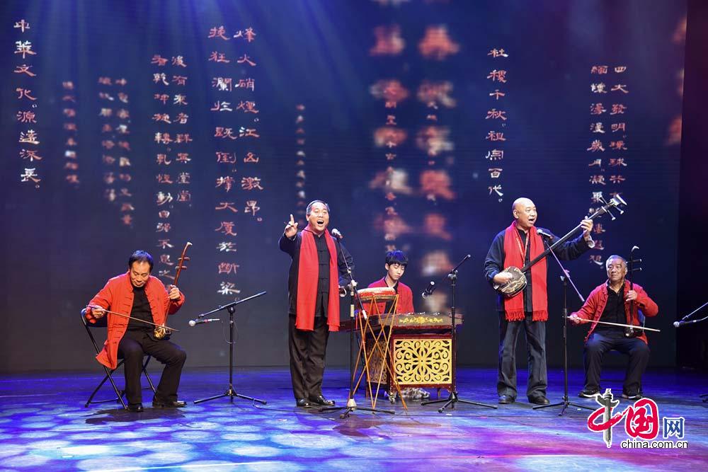 12月31日,“中华世纪坛传统文化季2019”开幕式现场,国家级非遗项目京东大鼓传承人崔继昌和姜子龙共同表演《咏世纪坛赋》。王猛摄影