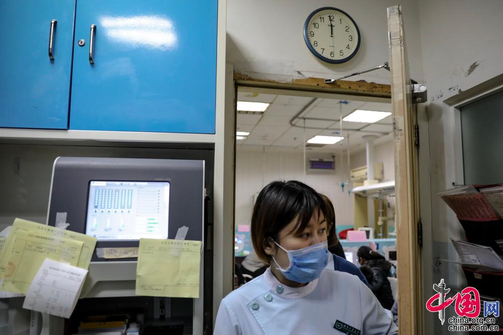 墙上的时钟过了零点,急诊科的医生、护士们在紧张中迎来新年,而此时他们彼此间只会简单的说上一句“新年快乐”,然后就又如平时一样继续忙碌着。中国网记者 郑亮摄
