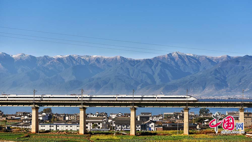 动车行驶在大 丽线双廊 大桥上 丁玲 摄影