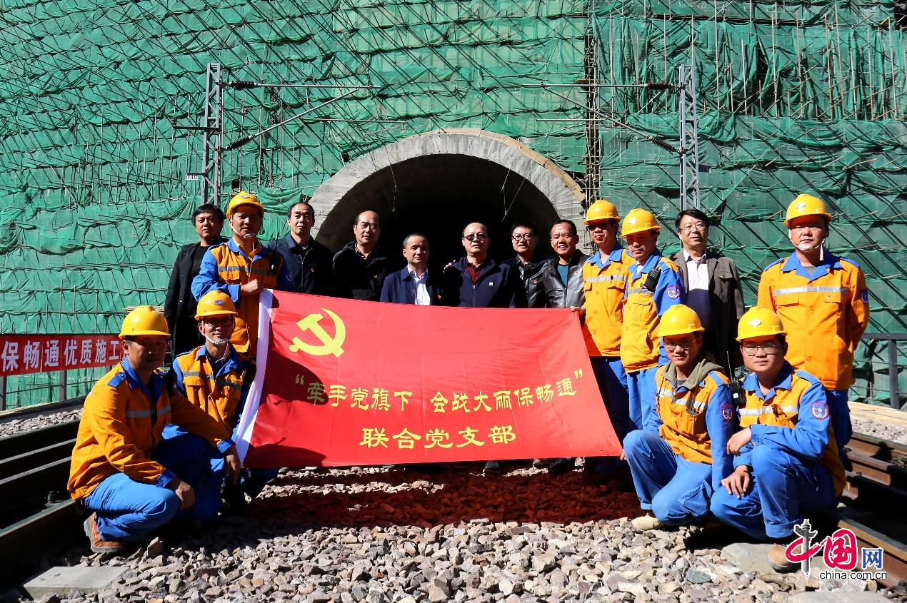 在 大丽线难度 最大、风险最高、工期最紧、技术要求最高的“咽喉”部位 大丽 线 K72 北衙隧道施工点。 11 月 2 日,中铁电化局 一 公司大丽提速项目部同 5 家单位在大理站共同举办“牵手党旗下,会战大丽保畅通”联创共建党内主题实践活动。动员会上,滇中铁路建设指挥部要求各参建单位要充分认识开展“牵手党旗下,会战大丽保畅通”活动的重大意义和目的,要发扬“谋大局、敢担当、真落实、勇作为”的昆铁奋斗精神为激励,以“保安全、保质量、保进度”为目标,共同确保 大 丽线施工 会战任务圆满完成。