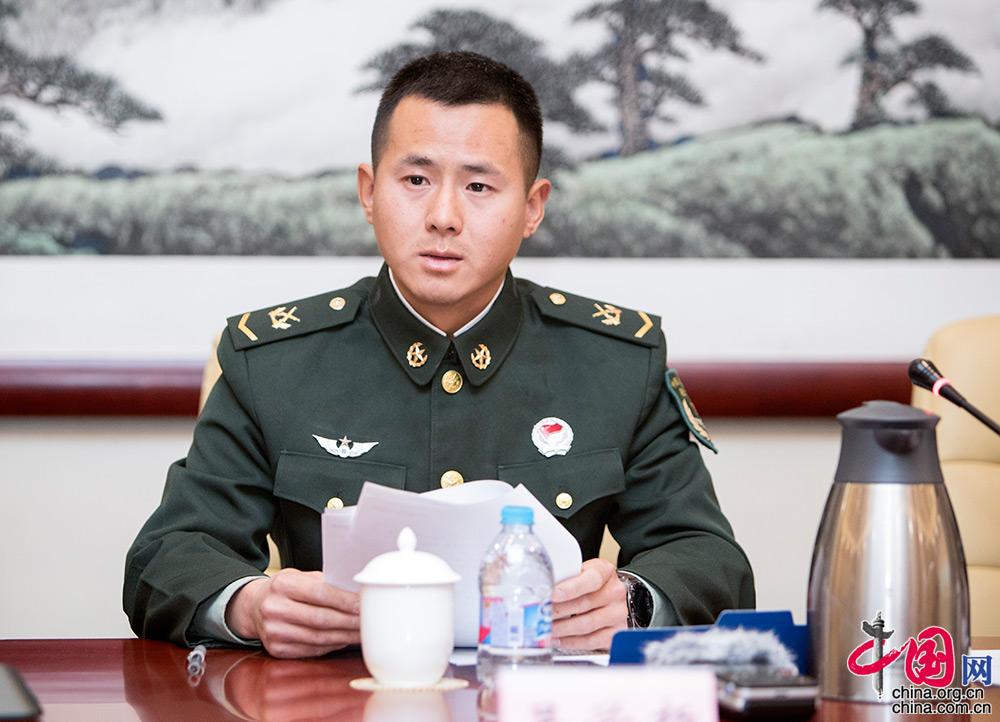 陆军第71集团军某旅“王杰班”士官吴学哲在座谈会上发言。