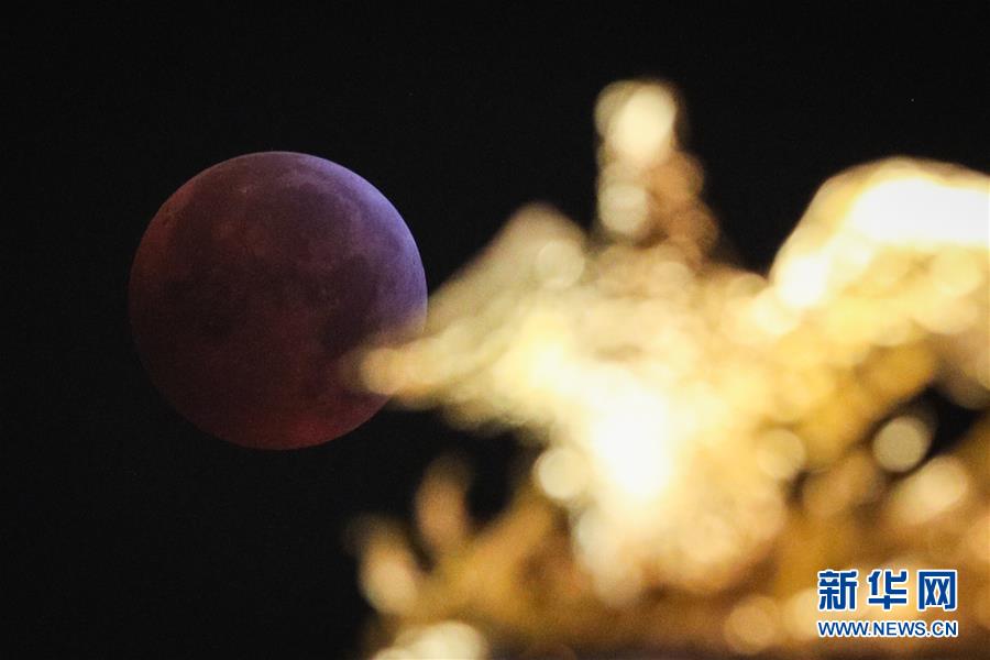 这是1月21日在比利时首都布鲁塞尔拍摄的“超级红月亮”。 1月21日迎来2019年第一个月圆之夜,新年首次“超级月亮”现身天宇。巧合的是,当日还发生一场“月全食”奇观。因此,这一天的月亮也被称为“超级红月亮”。 新华社记者 郑焕松 摄
