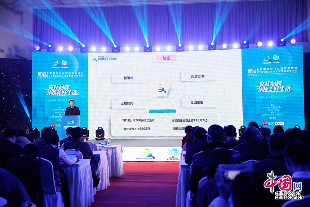 1月25日,北京市文资办副主任董殿毅回顾总结第六届消费季开展情况,并宣布品牌榜发布仪式开始。中国网记者 李佳摄影