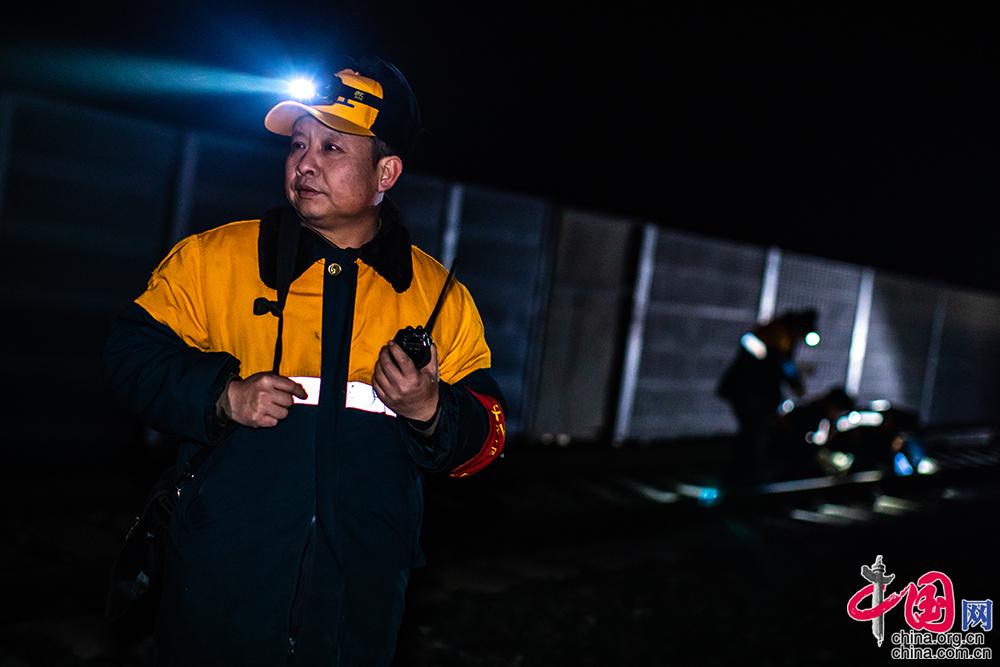 通过语音电台保持与车站值班员的联系,勤看站内信号显示,掌握列车运行情况和施工影响范围,及时准确的向工地施工负责人和防护员预报,确保行车正点安全运行和施工安全。张延安为正在作业的同事进行现场防护。2019年春运是津保的第四个春运,也是张延安在岗位上连续度过的第五个春节。相对于同事他年龄相对大一些,每逢春节值班他总会主动找到工长申请:“春节快到了,平时小兄弟们回趟家不容易,春节值班就让他们回去吧,工区我岁数最大,我就留下来值班。”中国网记者 郑亮摄