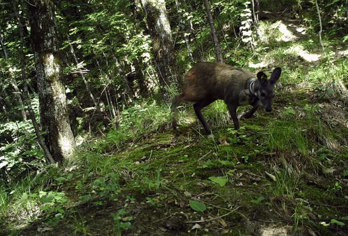 2018年4月26日以来,红外相机多次在陕西省宁陕县密林中拍摄到佩戴GPS项圈、人工养殖的国家一级重点保护野生动物林麝成年个体及携带幼仔活动的场景,表明陕西省进行的世界首次养殖林麝野化放归试验获得成功。