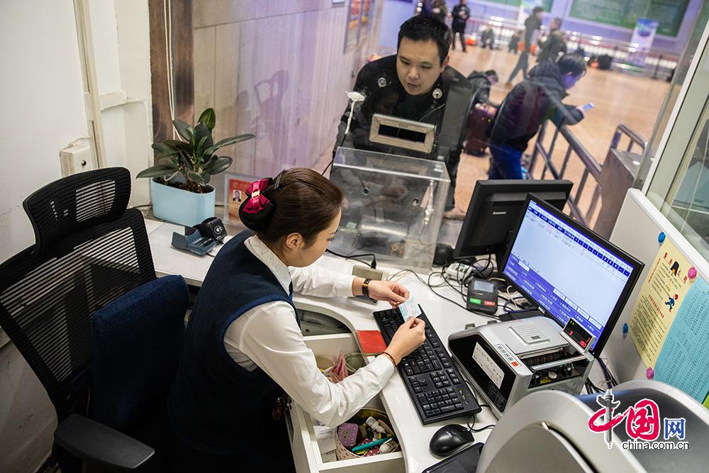 任倩来到北京西客站工作已经三年了,而从入职那年开始,她就没有回家过过除夕夜,虽然每年的除夕她都是白班,但是老家是内蒙的她,依旧无法和家人吃上那顿团圆饭。中国网郑亮摄影
