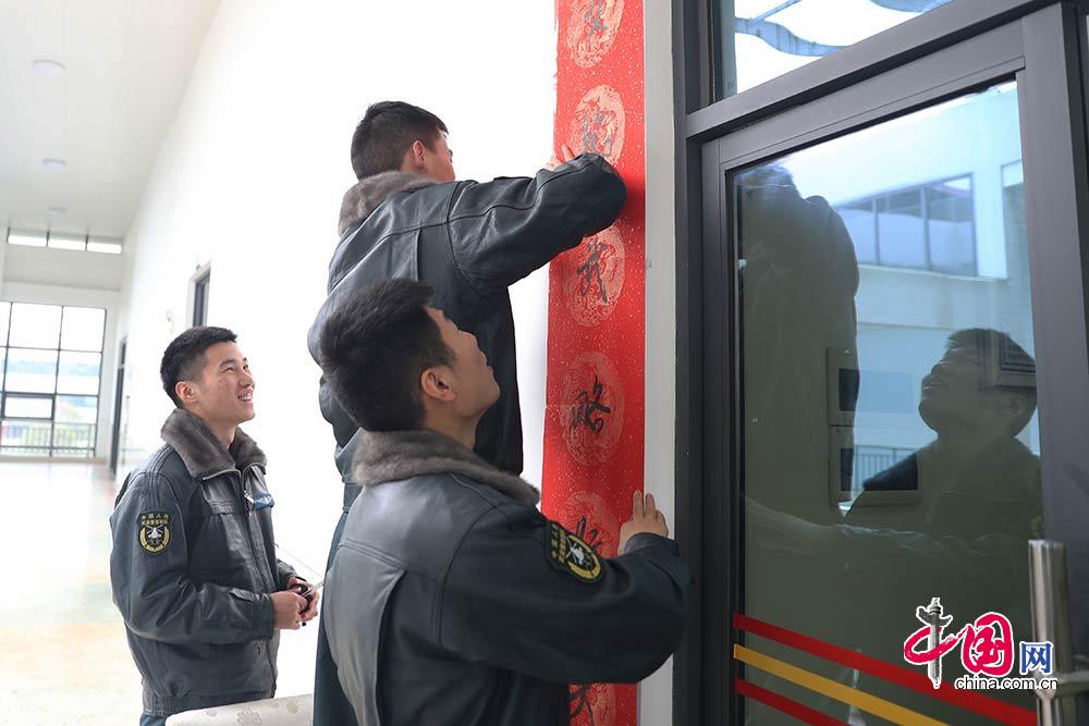 2月3日,武警某部直升机支队飞行三大队正在布置节日氛围(蒋宇 摄)