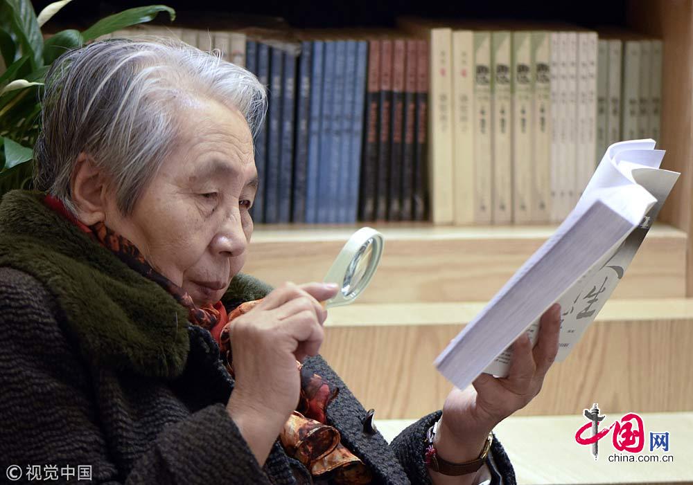 2019年2月6日,一位老人在位于呼和浩特市的青城·阅立方图书阅读广场阅读。王正/视觉中国