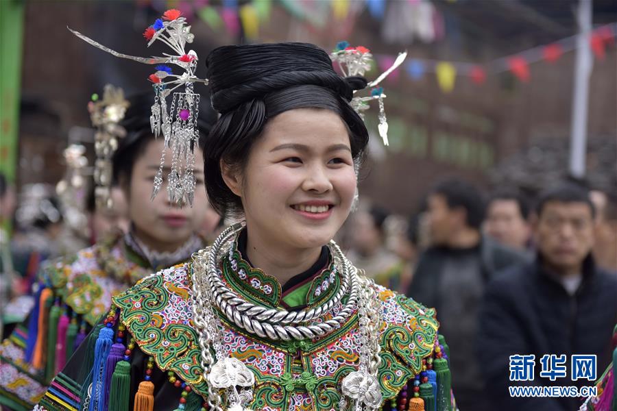 2月8日,在贵州省榕江县朗洞镇高便村,侗族同胞在进行踩歌堂活动。当日是大年初四,贵州省黔东南苗族侗族自治州榕江县朗洞镇高便村的侗族同胞身穿盛装,弹唱琵琶歌踩歌堂,欢度新年。新华社发(蒋佐仙 摄)