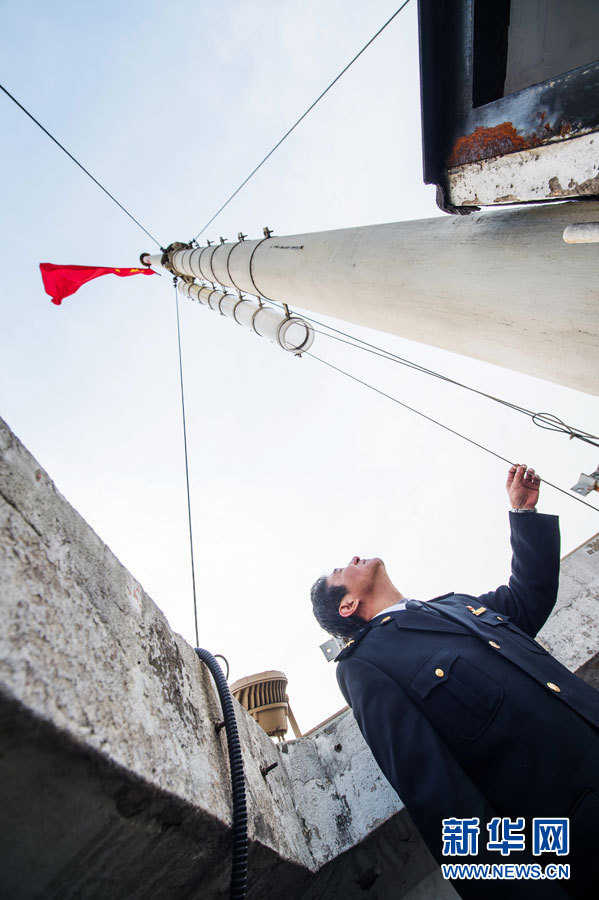 魏云寺也是海关大楼国旗的守护人,这里是海关,也是中国,每到重要节点,他都会定期整理和更换这一面标准尺寸的国旗。新华网吴恺 摄