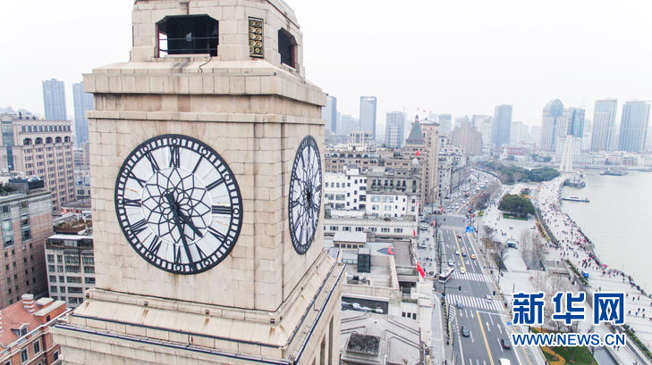 海关大钟最初的报刻声是英国皇家名曲《威斯敏斯特》曲。现在使用的报时乐曲是《东方红》。新华网吴恺 摄