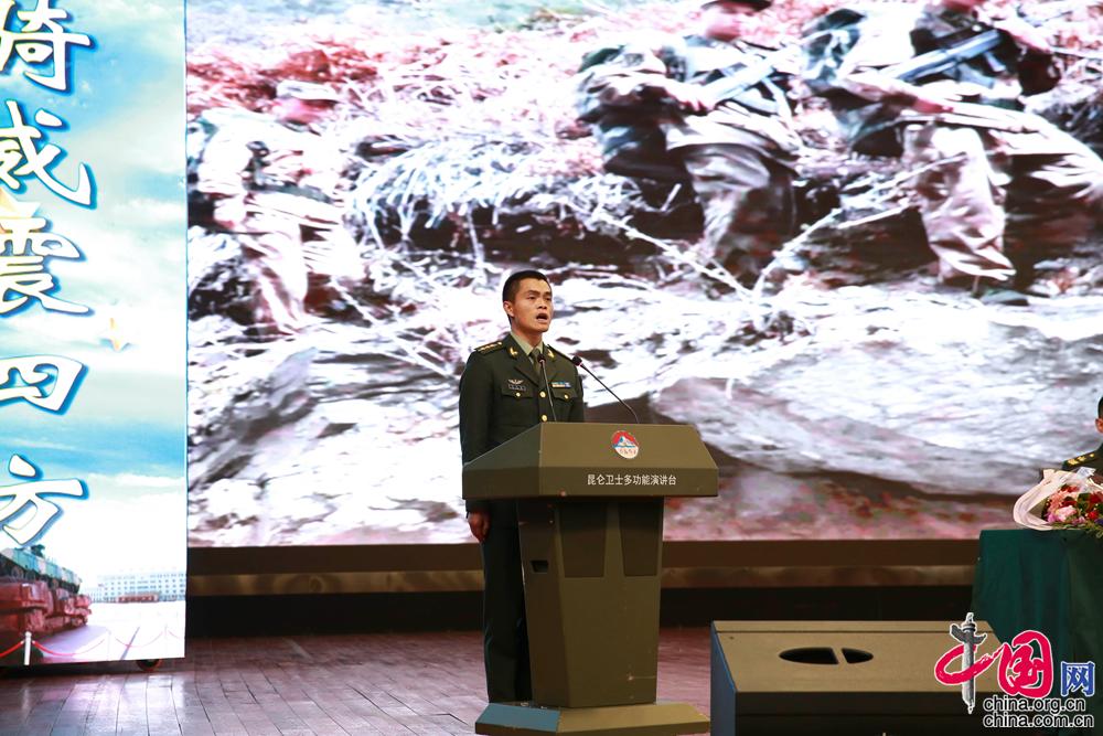 某边防团副营长杨祥国在先进事迹报告会上作报告。张雨 摄
