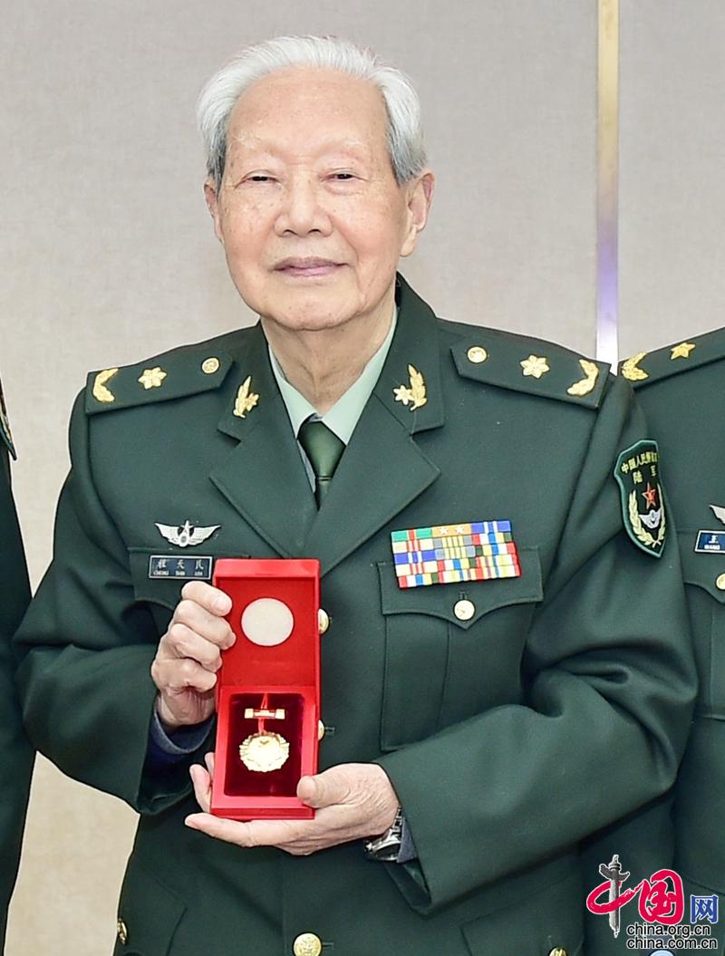 图为程天民院士被授予胜利功勋荣誉章。