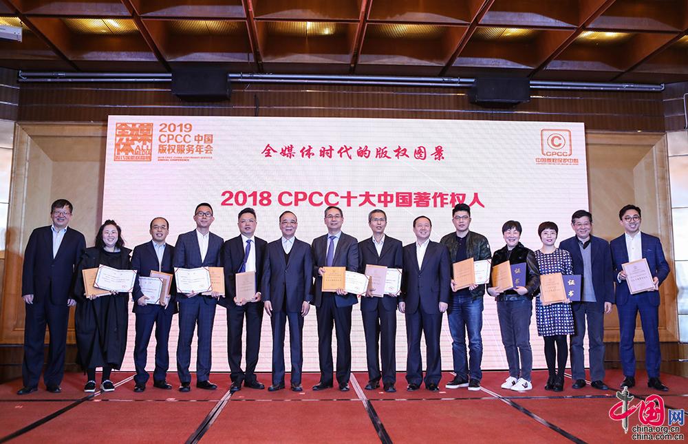 “2018 CPCC十大中国著作权人”获奖者上台领奖。