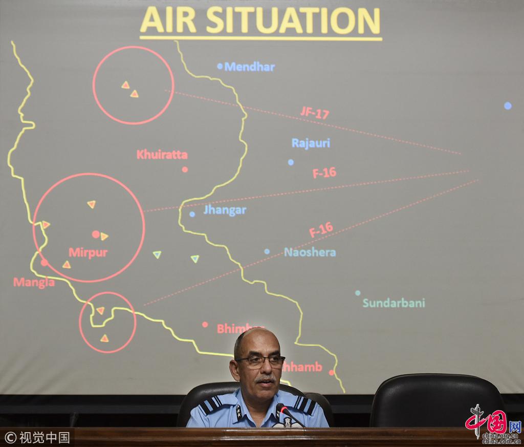 当地时间2019年年4月8日,在新德里印度空军召开国际记者会,对外宣布了己方最核心的雷达数据,表明印度确实击落了一架巴基斯坦的F-16战斗机。图片作者:Hindustan Times/视觉中国