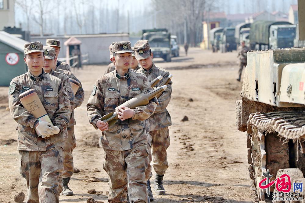 第71集团军某合成旅组织装甲分队,跨昼夜实弹射击考核。图为官兵搬运弹药。