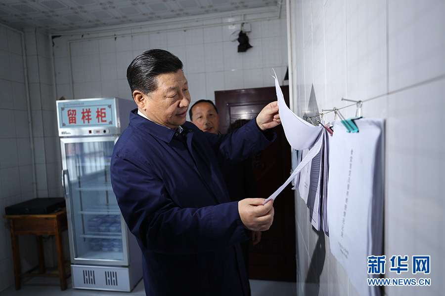 4月15日,中共中央总书记、国家主席、中央军委主席习近平在重庆考察调研。这是习近平在石柱土家族自治县中益乡小学学生食堂了解陪餐情况。 新华社记者 鞠鹏 摄