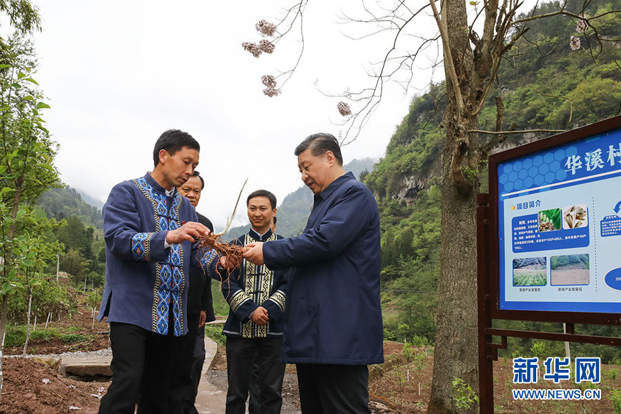 4月15日,中共中央总书记、国家主席、中央军委主席习近平在重庆考察调研。这是在石柱土家族自治县华溪村,习近平深入田间地头,实地了解脱贫攻坚工作进展和解决“两不愁三保障”突出问题情况。 新华社记者 鞠鹏 摄
