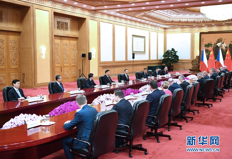 4月28日,国家主席习近平在北京人民大会堂会见捷克总统泽曼。 新华社记者 翟健岚 摄