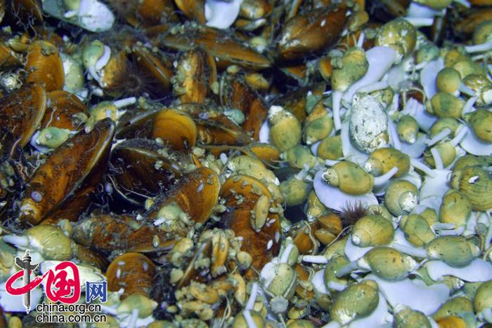 冷泉系统中的贻贝与海螺群落。