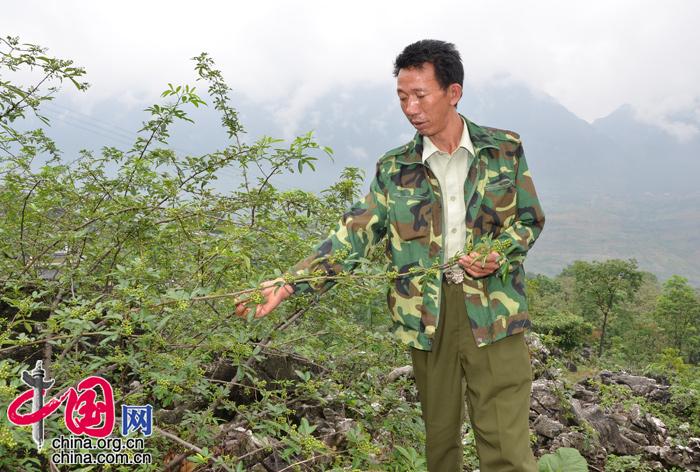 贵州黔西南州贞丰县北盘江镇银洞湾村村民上山照看花椒。(韩琳 摄)