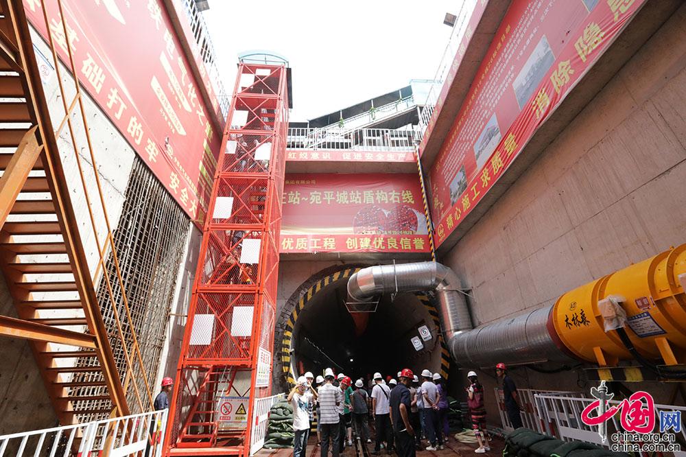 在安全防护人员陪同下,市民们深入到距离地面16米多的盾构施工现场参观,真实感受隧道成型的过程。中国网记者 董宁摄影