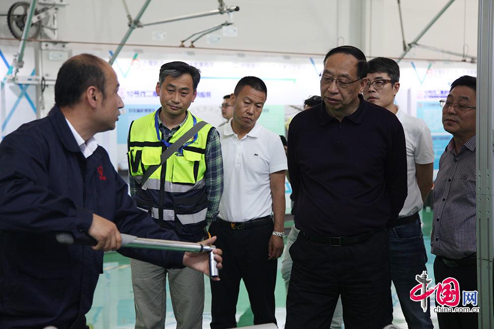技术人员向原上海申通地铁集团有限公司总裁应名洪介绍施工工具的使用方法。