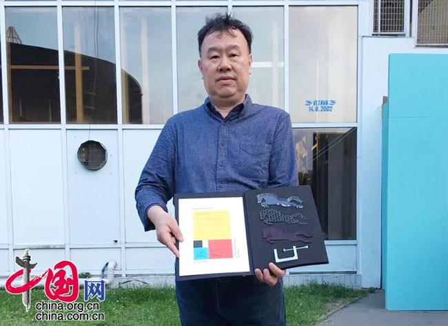 中国舞美设计家周正平获得第14届布拉格演出设计与空间四年展“最佳灯光设计奖”。图为周正平手捧获奖证书。