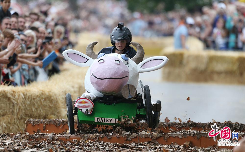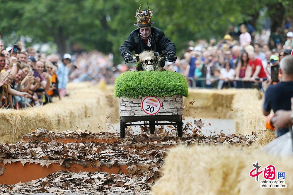 当地时间2019年7月7日,英国伦敦亚历山大宫举行了红牛肥皂盒赛车比赛,参赛的赛车均为选手们自制的非机动车辆。图文来源:SWNS/视觉中国