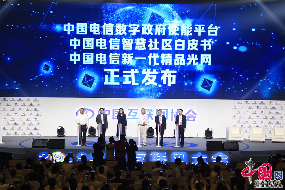 会议期间,中国电信举行了数字政府重大成果发布活动,首次提出“多接入、富应用、大平台”的数字政府整体架构,对外发布“数字政府使能平台”、“智慧社区白皮书”和“新一代OTN精品光网”重大成果,并进行了全方位解读。中国网记者 伦晓璇 摄