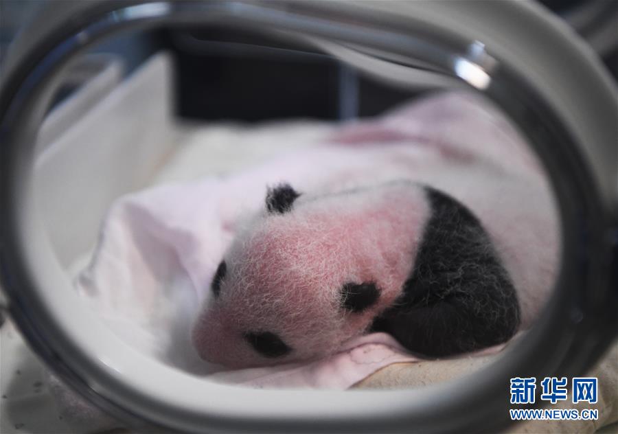 这是7月16日在重庆动物园熊猫馆拍摄的育婴箱中的大熊猫宝宝。 新华社记者 王全超 摄