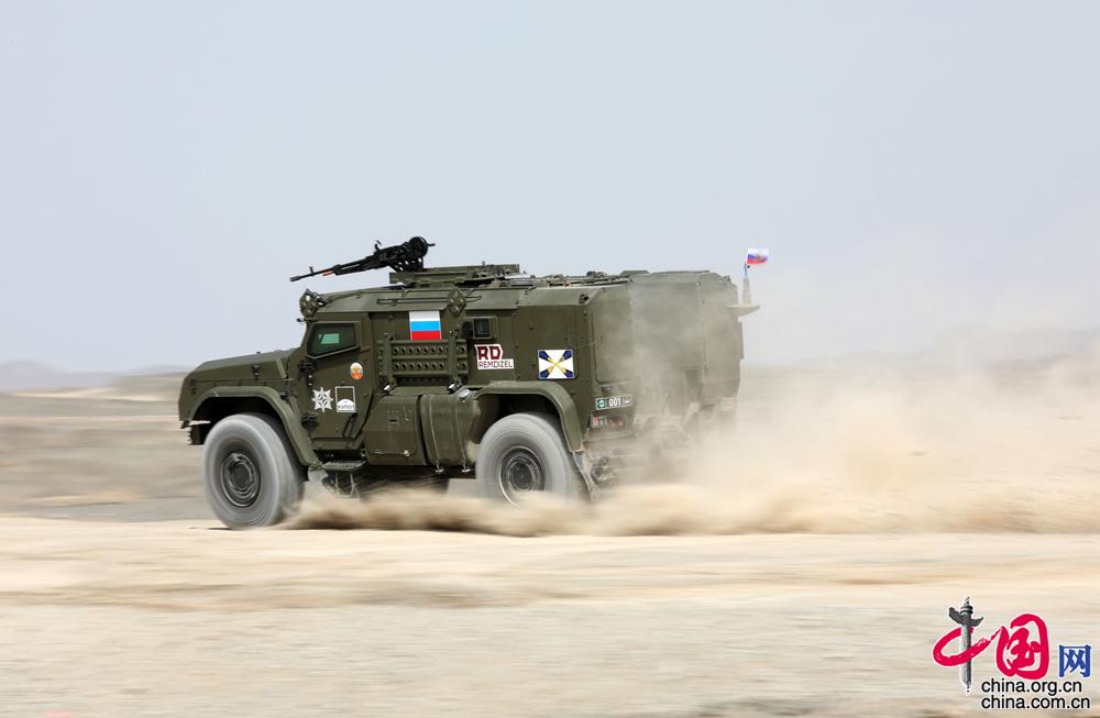 “国际军事比赛-2019”“晴空”防空导弹兵项目比赛上,俄新型“台风”轮式装甲车首次亮相。摄影 王鹏飞