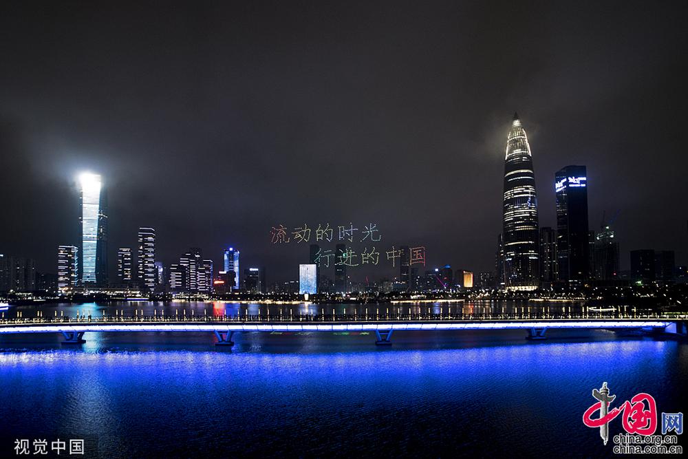 8月11日晚,深圳湾上演惊艳一幕。大楼荧幕亮起巨幕五星红旗,600架无人机编队组成“我爱你中国”、“我爱香港”等标语,点亮“最美中国红”。视觉中国